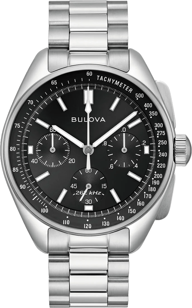 The Lunar Pilot is powered by Bulova’s proprietary high precision quartz movement, resonating at a frequency of 262khz for unparalleled accuracy. The watch is paired with a matching 3-link silver-tone stainless steel bracelet with a push-button deployant clasp and a NATO leather strap, both of which feature an easy release system for quick changes. The Bulova Lunar Pilot brings the past to the present with a design from space exploration history, perfect for the modern adventurer.