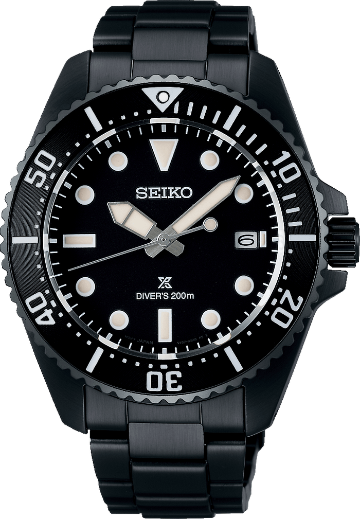 Seiko Prospex Solar Powered 200m stealth black diver's mens watch SNE599P. Sapphire Glass. Case size 41mm.